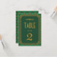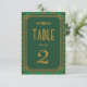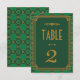 Estos números de mesa presentan una paleta de colores verde esmeralda y dorado, un marco geométrico, patrones geométricos y otros detalles estilísticos inspirados en el Art Déco y los felices años veinte. Puedes personalizar los campos de texto de muestra a tu gusto.