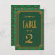 Estos números de mesa presentan una paleta de colores verde esmeralda y dorado, un marco geométrico, patrones geométricos y otros detalles estilísticos inspirados en el Art Déco y los felices años veinte. Puede personalizar los campos de texto de muestra a su gusto.