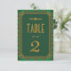 Estos números de mesa presentan una paleta de colores verde esmeralda y dorado, un marco geométrico, patrones geométricos y otros detalles estilísticos inspirados en el Art Déco y los felices años veinte. Puede personalizar los campos de texto de muestra a su gusto.