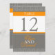Números de mesa de recepción de boda modernos grises y naranjas simples de doble cara. Personalice con sus datos. Coincide con el menú de boda que se muestra a continuación. Debe cambiar el número a cada número que necesite y agregarlos a su carrito, uno a la vez. Los descuentos por cantidad pueden aplicarse una vez que agregue todos los artículos a su carrito. Si tiene alguna pregunta o necesita ayuda u otros artículos de boda en este estilo, por favor contácteme a través de "enviar un mensaje" en la página principal de mi pequeño edén (en el panel izquierdo). Diseño y fotografía de Sarah Trett.
