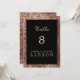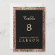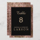 Unos elegantes números de mesa de boda modernos con brillo de oro rosa y negro. Los números de mesa son parte de un conjunto completo de invitaciones de boda.