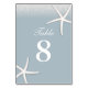 Números de mesa de boda de playa de estrella de mar azul polvoriento Tarjetas de mesa.