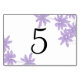 Personalice estos bonitos números de mesa de boda de margaritas púrpuras y cree una tarjeta diferente para cada mesa en su recepción de boda, ducha de novia o fiesta de jardín. Estas elegantes tarjetas de número de mesa florales personalizadas presentan flores de margarita lavanda adornando las esquinas con un fondo blanco.