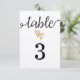 Tarjeta de número de mesa de boda en papel kraft con corazones de papel de oro. Invitación, RSVP, información para invitados, gracias, guardar la fecha, sellos postales, accesorios y más disponibles en http://www.zazzle.com/bydandeliondesign