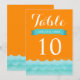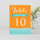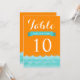 Estos bonitos números de mesa de boda presentan el océano y las olas en tonos de azul con fondo naranja. Un diseño elegante y moderno que es perfecto para bodas en la playa, bodas náuticas y bodas de destino. Puede personalizar los campos de texto de muestra a su gusto. También están disponibles otras invitaciones a juego.