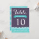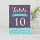 Estos números de mesa de boda presentan el océano y las olas en tonos de azul con fondo púrpura. Un diseño elegante y moderno perfecto para bodas en la playa, bodas náuticas y bodas de destino. Puede personalizar los campos de texto de muestra a su gusto. También están disponibles otras invitaciones a juego.