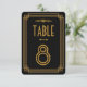 Estos números de mesa presentan una paleta de colores negra y dorada, un marco geométrico y otros detalles estilísticos inspirados en Art Deco y los felices años veinte. Puedes personalizar los campos de texto de muestra a tu gusto.