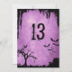 Números de mesa de Halloween con murciélagos, cuervo y árbol sobre un fondo púrpura con un marco negro desgastado. Esto es perfecto para una boda de Halloween o una fiesta de Halloween. Puede cambiar el número y agregarlo a su carrito. Luego, cambie al siguiente número y agregue una de esas tarjetas a su carrito. Entonces, si tiene diez mesas, agregará cada tarjeta una vez con el nuevo número diez veces. La tarjeta coincide con la colección en mi tienda llamada Boda de Halloween con calavera, murciélagos, araña y telaraña.