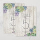 Fuentes únicas, suculentas coloridas en acuarela y fondos de tablones de madera rústica son los aspectos más destacados de estos productos de boda para combinar. Esta hermosa tarjeta de número de mesa tiene bordes de follaje en una base de madera ligera con una plantilla proporcionada para editar números, nombres de los novios y fecha de la boda. Busque ID515 para ver todos los productos coincidentes en este conjunto.