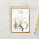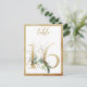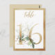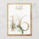 Hermosa tarjeta de número de mesa con un motivo botánico: una ilustración de acuarela de follaje verde y números con efecto dorado. Mesa 16. Por favor, revise todos los números disponibles