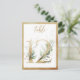 Números de mesa dorados con follaje verde, tarjeta