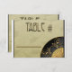 Tarjetas de mesa de 2 caras de la serie de bodas "Fan Elegant" son una opción perfecta para bodas con un tema Oriental, Eduardiano o Art Deco. Fondo de abanico tono sobre tono, hermoso abanico negro y dorado y efecto brillante de la impresión en papel metálico dorado seguramente complacerá. 3,5"x 5". Pintura digital original de Leslie Sigal Javorek. También disponible en Dawn Pink y Bermuda Blue.
