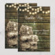 Número de mesa de boda de madera rústica con aliento de bebés y luces. Los números de mesa son parte de un conjunto de invitaciones de boda