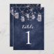Números de mesa en frasco de Mason con pizarra azul diseñados por Colourful Designs Inc. Copyright 2015 - CDI y Licenciantes