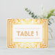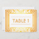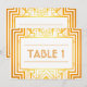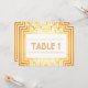 Estos números de mesa presentan un intrincado marco geométrico, patrones geométricos, una paleta de colores blanca y dorada, y otros detalles estilísticos inspirados en el Art Déco y los felices años veinte. Puede personalizar los campos de texto de muestra a su gusto.