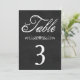 Estos números de mesa con tema de boda con pizarra son caprichosos y románticos. Las tarjetas presentan caligrafía, tipografía moderna, florituras florales sobre un fondo de pizarra o pizarrón en un esquema de color blanco y negro.