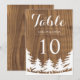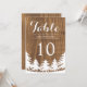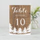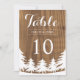 Si te vas a casar al aire libre, ¡considera adoptar este perfecto tema de boda en el bosque! Estos números de mesa de boda encantadores presentan un bosque y paisaje en blanco sobre un fondo de imitación de grano de madera en marrón oscuro. Puedes personalizar los campos de texto de muestra a tu gusto. También están disponibles otras invitaciones a juego.