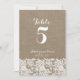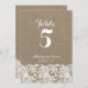 Números de mesa para una boda rústica con arpillera y encaje. El diseño es a doble cara. Puede agregar cada número a su carrito e imprimir ambos lados. Todo el texto, estilo y ubicación es editable. Coincide con la colección de arpillera y encaje en mi tienda. http://www.zazzle.com/collections/burlap_and_lace_for_rustic_wedding-119613768546532247?rf=238757713317449265
