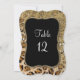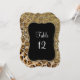 Números de mesa coincidentes para una recepción formal, fiestas de regalos para novia u otros eventos con asientos asignados. Hay una amplia variedad de productos coordinados. La impresión de leopardo de acuarela a mano en color marrón natural y marrón marta con negro está superpuesta con patrones de puntos de purpurina de medio tono y cadenas de diamantes y cuentas de oro para una funda de teléfono divertida, glamorosa y brillante. Un marco negro azabache en forma de soporte con oro y diamantes sostiene el número de mesa o nombre. El patrón tiene un aspecto de luces centelleantes para brillar sin desprender purpurina. NOTA: Este es un patrón impreso plano, no hay joyas reales, oro o purpurina, solo una representación gráfica. Necesitará tener un soporte para mantener estas tarjetas en pie.