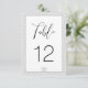 Hermoso en su simplicidad, las piezas de este conjunto de boda presentan acentos de escritura moderna y manuscrita y una paleta de colores clásica en blanco y negro que se puede cambiar fácilmente para adaptarse a sus preferencias. Un borde geométrico sutil destaca esta tarjeta de número de mesa junto con las iniciales de los novios. Busque ID523 para ver todas las piezas de este elegante conjunto.