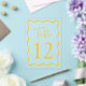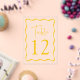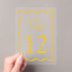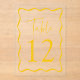 Elevar su decoración boda con estos números de mesa de Boda acrílico de marco ondulado moderno! Con un diseño retro único, cada tarjeta de mesa muestra "Table" en un elegante guión amarillo escrito a mano con el número de tabla siguiente. Un borde ondulado amarillo moda rodea el número, creando un contraste sorprendente frente a la elección de un fondo acrílico escarpado o transparente. Perfecto para añadir un toque moderno a cualquier tema boda, estos números de mesa ofrecen un sofisticado estilo personalizado para su celebración. Nota de pedido: Para ordenar varios números de tabla, agregue cada número a su carrito por separado: no ordene por cantidad, ya que se obtendrán múltiplos del mismo número. Atención: esta tarjeta de mesa no viene con soporte.