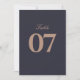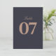 Eleva la elegancia de su recepción nupcial con los números de la mesa de la Marina Moderna y del Boda de oro Rosa. Diseñados con un sofisticado fondo azul marino y adornados con brillantes acentos dorados rosas, estos números de mesa le dan un toque de glamour moderno a su celebración. Perfecto para guiar a sus huéspedes a sus asientos con estilo, cada tarjeta presenta una tipografía elegante y un diseño minimalista que complementa una variedad de temas bodas, desde clásicos y formales hasta moda y contemporáneo. La mezcla de la marina profunda y el oro metálico en rosa crea un impresionante contraste, haciendo que estos números de mesa no sólo sean funcionales sino también un elemento decorativo llamativo para su escapada. Diseñados con materiales de primera calidad, estos números de mesa garantizan durabilidad y un acabado lujoso que impresionará a sus huéspedes. Póngalas con elementos decorativos a juego, como centerelas doradas rosas, ropa de cama marina o motivos florales, para un aspecto cohesionado y deslumbrante. Haga su día de boda inolvidable con estos números de mesa elegantes y prácticos, diseñados para añadir un toque moderno y refinado a su ocasión especial.
