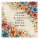 Transformar tu espacio con inspiración. Nuestra fotografía "Nunca te rindas" captura la esencia de la resiliencia y la determinación. Con un potente mensaje y un tamaño de personalizable de alta calidad, esta impresión es un recordatorio diario de perseverar. Añada un toque de motivación a su casa u oficina y deje que el flujo de energía positivo fluya. Personalízalo a tu gusto y convierte tu pared en un lienzo de fuerza. Acepte el espíritu de perseverancia con esta foto impresa única y significativa. Este tamaño es: 12 x 12 pulgadas. También puede elegir un marco para esta impresión. ¡Perfecto como regalo de cumpleaños!
