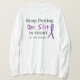 Esta camisa dice: "Sigue poniendo un pie delante del otro" en el frente. Dice: "Nunca te des por vencido". Tiene una cinta morada de sensibilización que representa Fibromialgia, Sarcoidosis, conciencia del linfoma de Hodgkin.