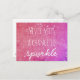 Esta encantadora postal presenta un diseño de bokeh rosado y la frase motivacional "Nunca pierdas la oportunidad de brillar". Perfecto para mandarlo a un amigo o a un ser querido, o por usted mismo.