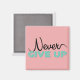 Un bonito imán rosa y azul con las palabras "Nunca te des por vencido".