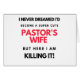 Nunca soñé que me convertiría en la esposa de un pastor superlindo, pero aquí estoy matando el diseño. Esta es una pequeña cita graciosa que es genial como los regalos de la esposa del Pastor. También como una idea de agradecimiento para la esposa del Pastor.