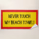Este diseño llamativo muestra el mensaje "¡NUNCA TOQUE MI TOALLA DE PLAYA!" en texto negro sobre un fondo amarillo, junto con un borde rojo.