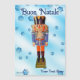 Un petardo alemán tradicional que representa a un militar con uniforme azul y naranja. El petardo es superpuesto en una imagen de fondo azul con copos de nieve. También aparece un texto italiano que dice "Buon Natale" (Feliz Navidad). Añade tu propio texto adicional.