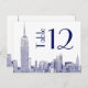 NYC Skyline 01 Tarjeta Etched Table Number Card Bl
