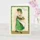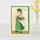 Cintas verdes y rocas de champú se usaron para celebrar el Día de San Patricio ya en el siglo XVII. Se dice que San Patricio usó el shamrock, una planta de tres hojas, para explicar la Santísima Trinidad a los irlandeses pre cristianos, y el uso y exhibición de shamrock y diseños inspirados en el shamrock se han convertido en una característica omnipresente del día. La frase "el uso del verde", que significa llevar un shamrock en la ropa propia, deriva de la canción del mismo nombre. Un ilustracion vintage de una hermosa clase irlandesa vestida con su mejor ropa sosteniendo una canasta de piedras preciosas. El texto es parte del ilustracion original y dice: "Y su, O, el Shamrock verde".