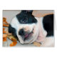cachorro de Boston Terrier jugando en hojas