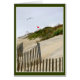 En la orilla exterior, una bandera roja de advertencia de peligro de surf se alza contra las tormentosas dunas de playa.