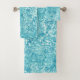 Las burbujas oceánicas y la corriente, en azul. Siente el océano e imagina la brisa marina. Océanos de amor en tu baño, ropa, zapatos y más en colores selectos. Amarillo, azul, plateado, morado y azul lite. Algunos elementos coincidentes. Artículos de baño.