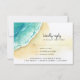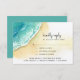 Esta hermosa tarjeta RSVP Beach cuenta con olas acuáticas a lo largo de la playa de arena. Las palabras "por favor conteste" están escritas a mano con letras de estilo caligráfico. Todos los detalles de la tarjeta de respuesta están en negro e incluyen las preferencias de elección de comida. La parte trasera de la tarjeta tiene un fondo acuático con los nombres de la novia y del novio y la fecha del boda en blanco. Este diseño se coordina con los demás productos de la colección de Bodas de Cabo San Lucas ・ El Arco.