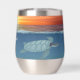 Hermosa salida del sol del océano y la natación vino de tortugas de mar Tumbler. El texto se puede personalizar.