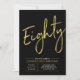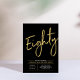 Celebra tu día especial con esta sencilla y elegante invitación de cumpleaños número 80. Este diseño presenta un "Ochenta" con letra de pincel en una distribución limpia en combinación de colores negro y dorado. Más diseños y suministros para fiestas están disponibles en mi tienda BaraBomDesign.