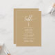 Ayude a sus huéspedes a encontrar su mesa con estas elegantes y modernas tarjetas con nombres de invitados. Tarjetas de doble cara para que los huéspedes puedan ver sus nombres desde ambos lados, delante o detrás. Espacio despejado alrededor que le da la libertad de usar clips o agujeros para las pantallas colgantes, o usar soporte de mesa/marco. Fondo de Tan amarillo y texto blanco. Detalles modernos de caligrafía escrita a mano. Varias opciones de color. Tener todos los números de tabla en el mismo color o mezclar colores según el tema de color del evento.