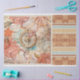 Papel de tejido de 18 lb 20x30 con un collage de pulpo, coral, conchas, pez estrella y una brújula, encima de un fondo de madera templada en un formato de 20x20 cuadrado. Junto a ella, en tamaño 10x20, se coordina el diseño de las baldosas.