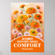 Una acuarela animada de marigoles y flores de cosmos. Las marigolas exhiben cálidos tonos naranjas y amarillos con intrincadas texturas pétalas, mientras que el cosmos agrega gazas de rosa y magenta con delicadas hojas de plumas. El fondo es un lavado dorado otoñal. personalizado con el nombre, verso de la Biblia, este mes de octubre el arte de las flores es el regalo de cumpleaños perfecto para los miembros de la familia, amigos, colegas y clientes. Hay regalos coincidentes de octubre, así como regalos por mes y medio.