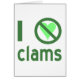 Odio las almejas. El diseño usa letras verdes, un corazón verde y el cartel internacional "NO" para leer "Odio las almejas". Para los que no les "dan corazón" o el marisco.