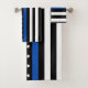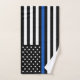 Toallas de baño de Bandera de la Línea Azul delgada- Diseño de la bandera estadounidense en colores de la bandera de la policía, diseño azul negro moderno. Perfecto para todo oficial de policía, madre de policía y esposa de la policía. Este delgado set de toallas de baño de línea azul es perfecto para fuerzas del orden o regalos familiares de la policía. ... DERECHOS RESERVADOS © 2020 Judy Burrows, Black Dog Art - Todos los derechos reservados. Juego de toallas de baño para un oficial de policía de la línea azul delgada moderna