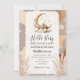 Hola bebé colores neutros beige claro, conejo y media luna. Toque perfecto para tu baby shower. ¡Felicidades por tu embarazo!