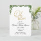 OH BOY la invitación a la ducha de bebé con hojas y detalles de oro.