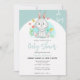 Celebra a la futura madre con este lindo diseño de ducha de bebé "oh boy" que incluye un conejo de color agua en un arco.