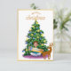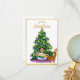 navidades tarjetas 2022 niño feliz con regalo bajo el árbol de navidad oh tarjeta navideña de ciervo feliz